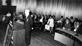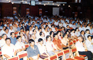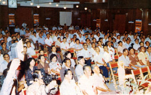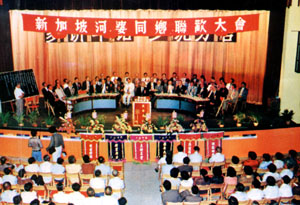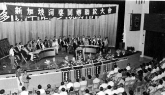新加坡河婆同乡在一九七九年十月二十八日假新加坡中华总商会大厦举行第一次联 欢大会。上图为当时会场情况。