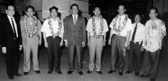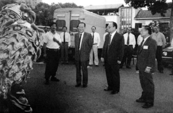 上图:为各乡会领导人在赠送仪式上合影留念,左起为张锦疋、拿督刘南辉、拿督黄纪达、黄亚明、蔡利、蔡剑光、李志明。