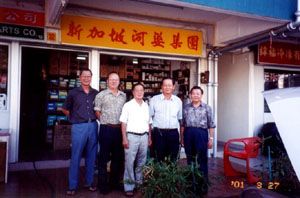 二○○一年三月,第八届河总代表大会在马六甲召开,全国河婆同乡会代表云集古诚,其中包括由吴德怀同乡所率领的新加坡河婆集团的代表。笔者有幸在大会上遇到担任新加坡河婆集团董事主席的吴德怀和单人总务的蔡锦辉两位同乡。由于笔者有事到新加坡,便打算到新加坡河婆集团参观,蔡锦辉同乡便把新加坡河婆集团的地址和电话写给我,以方便联络。