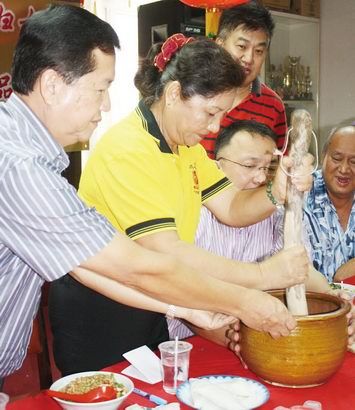 河婆擂茶制作示范品尝会 擂茶乃河婆乡情菜 刘梅娇:吃了不忘本 为了让更多有兴趣的人能够掌握擂茶的制作,砂拉越河婆同乡会妇女组4月11日在其会所举办河婆擂茶制作示范品尝会,进而把河婆传统保健美食发扬广大,代代相传。 砂拉越河婆同乡会妇女组主任刘梅娇指出,擂茶源自河婆人的食谱,多数河婆妇女都会制作擂茶。而每年年初七一定会煮七样擂茶,在年十五(元宵节)都会煮15样擂茶让亲友们品尝。这种乡情茶,吃了它,不忘父老乡亲自己的根! 她说,其实擂茶的制作并不复杂,他的料理可随个人口味和喜爱调制而成。它的味道甘香是出自多种香菜—九层塔、苦苈芯叶、紫苏、园香,毕其,擂茶不是汤,很多人误会擂茶是汤。他的配料分为三部份,即茶料,菜料,米饭。擂茶是否美味可口必须靠三者配合适宜。 她称,客家人在古晋分别有河婆、大埔、惠东安、嘉应和会宁。它们都拥有各自的传统美食。比如河婆就有河婆擂茶、桃饭、菜饭、煎堆、其巴和酿豆腐,而大埔最出名的是算盘子,八宝饭、牛腩等。惠东安的传统美食则有刀麻切,芋头扣肉等。 擂茶含河婆人勤俭持家文化 蔡文铎吁传承美食精髓 砂拉越河婆同乡会会长蔡文铎指出,擂茶虽然是一道简单的菜肴,不过,河婆先贤们却通过此美食节俭持家过日子,并吃出健康。 他说,在今天讲究保健养生年代,保持良好的饮食文化是非常重要的,然而,擂茶美食就是拥有保健作用。 随着生活水准的提高,饮食的不均衡引发各种疾病,包括肥胖问题。因此,要防止肥胖问题,就要多吃擂茶。 因为唯有摄取更多的蔬菜及蔬果,才能拥有健康的体魄。 这是他4月11日出席妇女组所举办的擂茶制作示范品尝会上致词时,如此表示。 与此同时,他也以河婆美食引以为荣,因客家擂茶可以发扬到今天,所以,他希望年轻一代必须把此擂茶美食的精髓代代相传。 而妇女组主办的擂茶品尝示范会是值得赞扬的,以期将此美食传承下去。 此外,他称,通过擂茶品尝会,可以加强同乡们的联系,并通过此平台,达到互相交流及嘘寒问暖的作用。